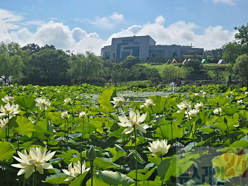 해남공룡박물관 연못에 연꽃이 만개해 박물관을 찾는 이들에게 또 하나의 특별한 여름 풍경을 선사하고 있다.