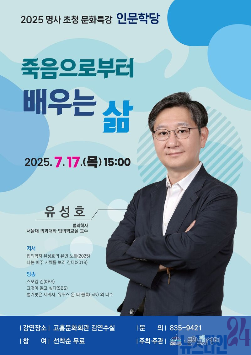 고흥군(군수 공영민)과 고흥군 문화도시센터(센터장 서성훈)는 오는 7월 17일 오후 3시, 고흥문화회관 김연수실에서 법의학자 유성호 교수를 초청해 ‘죽음으로부터 배우는 삶’을 주제로 명사초청 강연을 개최한다고 밝혔다.