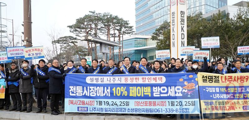 전라남도 나주시가 설 명절을 앞두고 대대적인 지역화폐 소비 활성화 캠페인을 전개하고 있는 가운데 빛가람 혁신도시 이전공공기관에서도 깊은 침체에 빠진 민생 경제를 위해 힘을 보태고 나섰다.