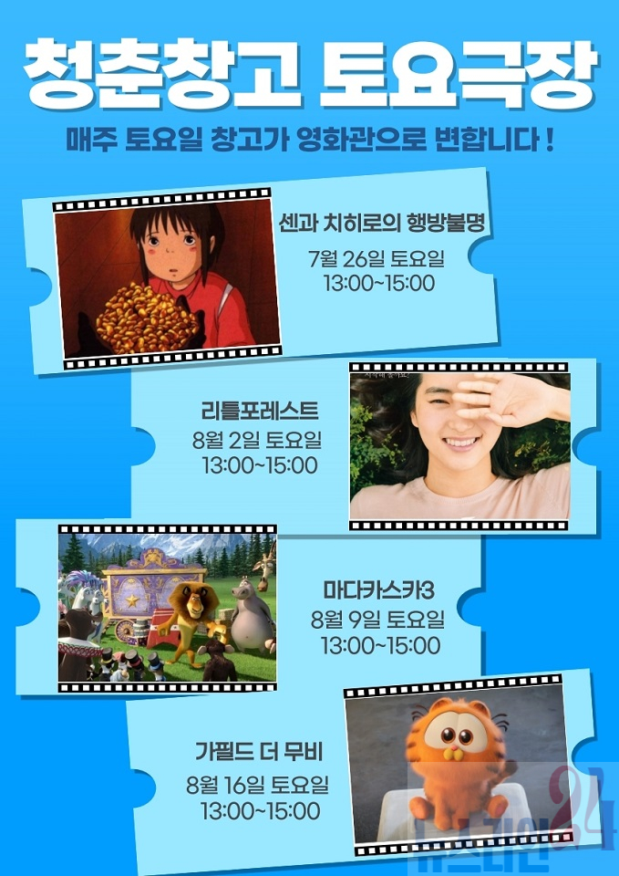 순천시(시장 노관규)는 순천시 대표 청년공간인 청춘창고에서 여름철 도심 속 문화체험 공간 제공을 위한 ‘청춘냉(冷)창고 무비데이’를 운영한다고 밝혔다.
