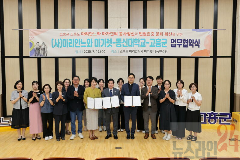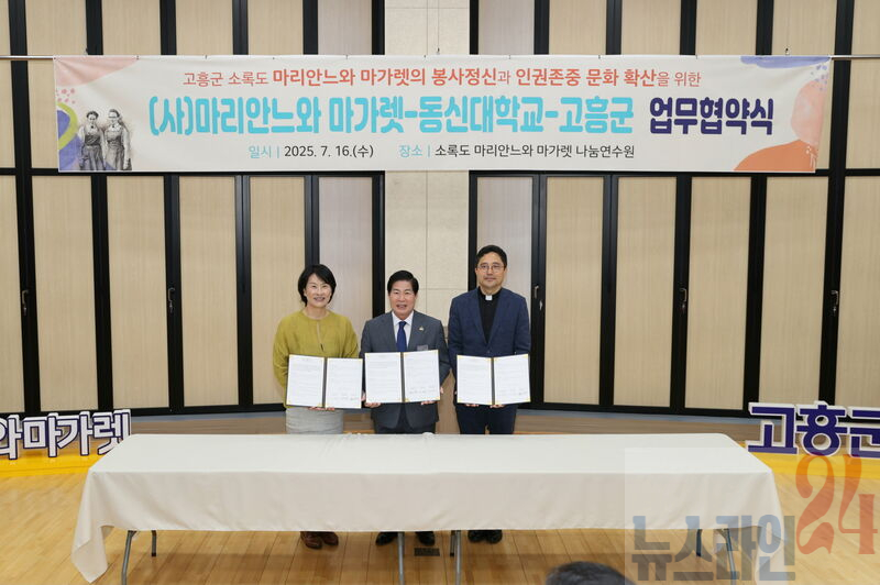 고흥군(군수 공영민)은 7월 16일 소록도 마리안느‧마가렛 나눔연수원에서 동신대학교, (사)마리안느와 마가렛과 함께 마리안느와 마가렛 두 간호사에 대한 선양사업 협력 및 나눔연수원 이용 활성화를 위한 3자 간 업무협약을 체결했다.