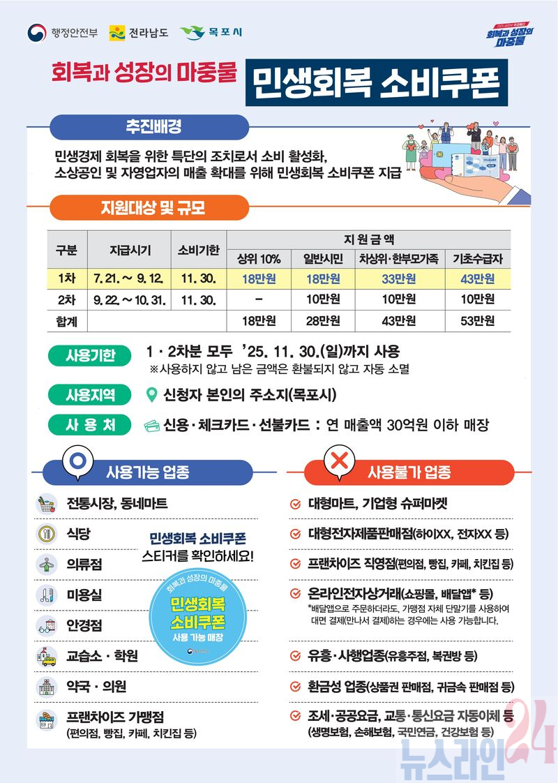 목포시가 민생회복 소비쿠폰 1차 지급을 오는 21일부터 시작한다.