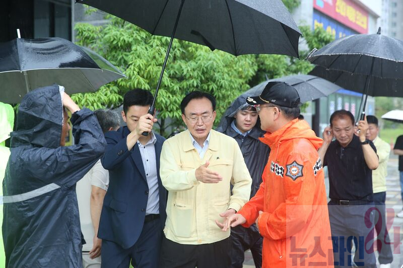 윤병태 시장은 빛가람동 오피스텔, 산포면 배수펌프장, 금천면 저지대 상가 등 침수와 산사태 피해가 우려되는 현장을 직접 찾아 배수 상황과 시설 점검에 나섰다.