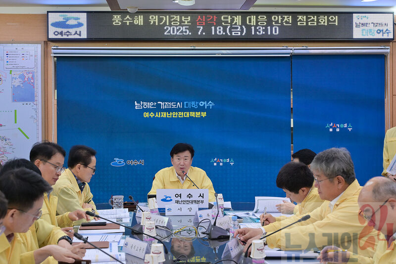 풍수해 위기경보 ‘심각’ 단계 발령에 따라 정기명 여수시장은 18일 재난안전상황실에서 긴급 안전 점검 회의를 주재하고, 전 부서의 총력 대응을 지시한 데 이어 같은 날 오후에는 미평동 일원 등 산사태 취약지역을 직접 찾아 현장 점검을 실시했다.