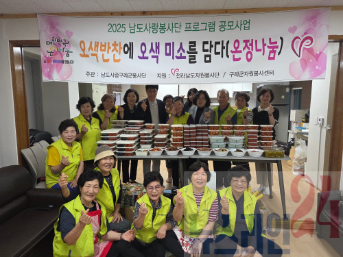 전남 구례군 자원봉사단체 남도사랑 구례군 봉사단(단장 김복순)이 지난 17일 지역 내 독거 어르신과 취약계층을 대상으로 반찬 나눔 봉사활동을 펼치며 「온기 나눔 캠페인」에 동참했다.