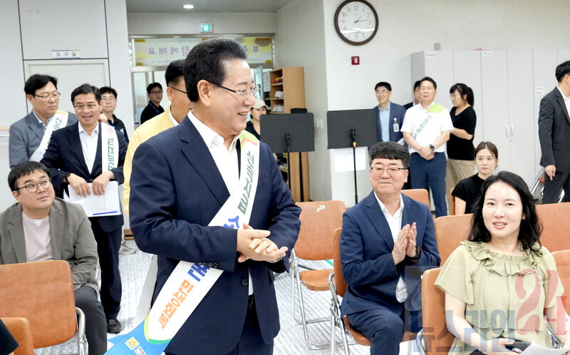 민생회복 소비쿠폰 지급 첫날인 21일 김영록 전라남도지사가 목포시 부주동 행정복지센터를 방문, 관계자들을 격려하고 도민들과 인사를 나누고 있다.