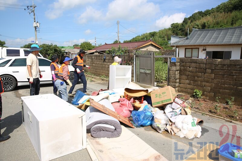복구 작업에는 다시면지역사회보장협의체 위원과 다시면 의용소방대원들이 함께 참여해 침수 피해 물품을 정리하고 분리 배출했으며 바닥 청소와 주변 정비 등 실질적인 현장 지원을 진행했다.