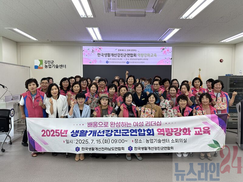 강진군이 생활개선강진군연합회 회원 38명을 대상으로 지난 15일 농업기술센터 소회의실에서 역량강화 교육을 실시했다. 이번 교육은 여성농업인의 리더십 함양을 위한 강의와 회원들의 역량강화 및 정서 안정을 위한 실습교육으로 구성됐다.