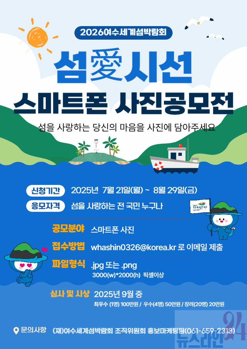 (재)2026여수세계섬박람회 조직위원회(이하 ‘조직위’)가 이달 21일부터 40일간 스마트폰 사진 공모전을 개최한다.