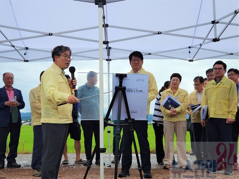 22일 나주시에 따르면 지난 21일 농촌진흥청과 함께 현장 기술 컨설팅을 실시하고 작물 회복 및 재해 예방 기술지원을 요청하는 등 피해 복구에 총력을 기울이고 있다.