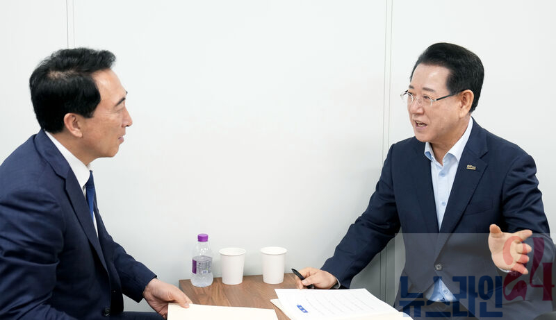 김영록 전라남도지사가 23일 서울 국정기획위원회에서 박홍근 국정기획위원회 국정기획분과장과 면담을 갖고 전남 미래발전 핵심과제 등 도 현안 해결을 위한 건의 및 협조를 요청하고 있다.