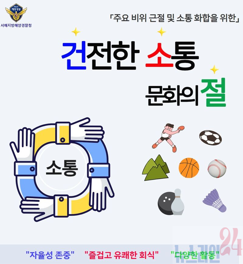 서해지방해양경찰청(청장 이명준)건전한 회식ㆍ소통 문화’ 조성에 힘쓴 결과음주 관련 비위 사건이 눈에 띄게 줄고 직원들의 만족도 또한 크게 향상되었다고 24일 밝혔다.