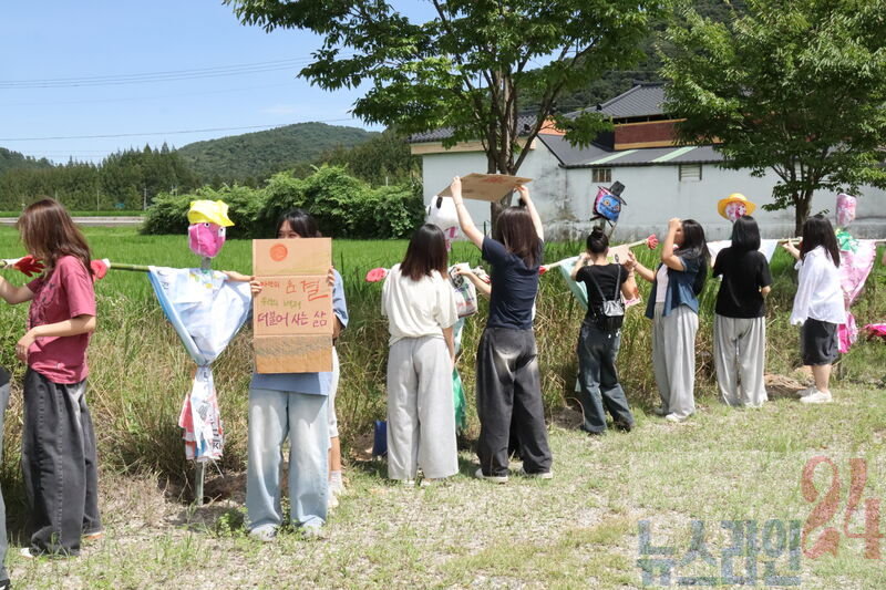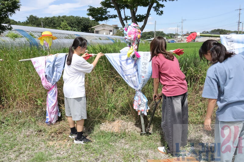 특히 허수아비에는 “환경을 지켜요”, “불편함은 잠시, 편안함은 영원히 자연과 더불어”, “자연은 소중한 우리의 보물” 등의 메시지를 적어 환경 보호의 의미도 담았다.
