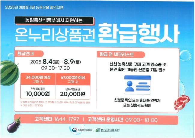 농림축산식품부가 주관하는 이번 행사는 여름철 농축산물 소비 촉진과 전통시장 활성화를 위해 마련됐다.