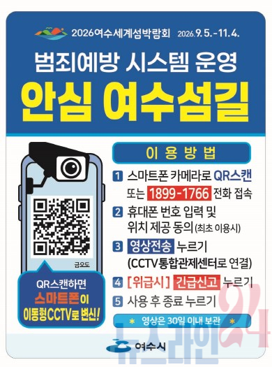 시 관계자는 “2026여수세계섬박람회의 성공개최를 위해 치안 강화와 안전 확보 또한 중요한 과제”라며 “이번 시스템이 범죄 예방은 물론 재난 상황 전파 등에도 폭넓게 활용돼 더욱 안전한 여수를 조성하는 데 획기적인 역할을 할 것으로 기대한다”고 밝혔다.