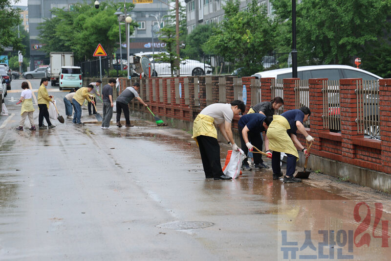또한, 4일 오전에는 전 직원이 참여한 가운데 무안읍 주요 시가지와 도로 곳곳에서 토사 제거, 쓰레기 수거, 배수로 정비 등 일제 복구 활동을 실시하며 피해 복구에 총력을 다했다.