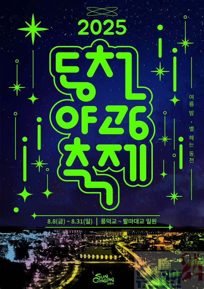 오는 8일 개막식에서는 아고라 공연과 순천시립합창단의 식전 무대에 이어 점등식과 불꽃쇼, 싱어송라이터 우디의 축하공연으로 축제의 시작을 알린다. 이후 매주 금·토요일에는 시원한 물총 놀이와 DJ 공연이 결합된 워터파티(9일), 광복 80주년 기념 야외 방탈출 ‘히든페이스’(15일), 동천 야경을 따라 달리는 야광 레이스(16일), 그리고 수천 개의 촛불로 무대를 밝히는 캔들라이트 콘서트(22·23일) 등 다채로운 테마 프로그램이 이어진다.