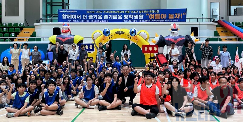 나주시 지역사회보장협의체 아동청소년 실무분과는 지난 4일 나주시 반다비 체육센터(구 실내체육관)에서 관내 지역아동센터 아동을 대상으로 2025년 특화사업의 일환인 ‘슬기로운 방학생활, 여름아 놀자!’ 행사를 개최했다고 밝혔다.