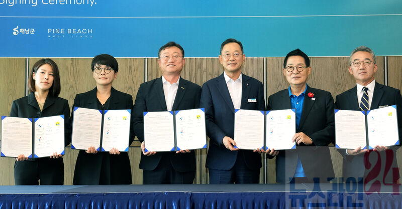 명창환 전라남도 행정부지사가 8일 해남 파인비치 골프링크스에서 해남군, LPGA, BMW 코리아, 파인비치 골프링크스와 ‘2025 LPGA BMW 레이디스 챔피언쉽 대회’ 성공 개최를 위한 업무협약을 체결하고 있다.