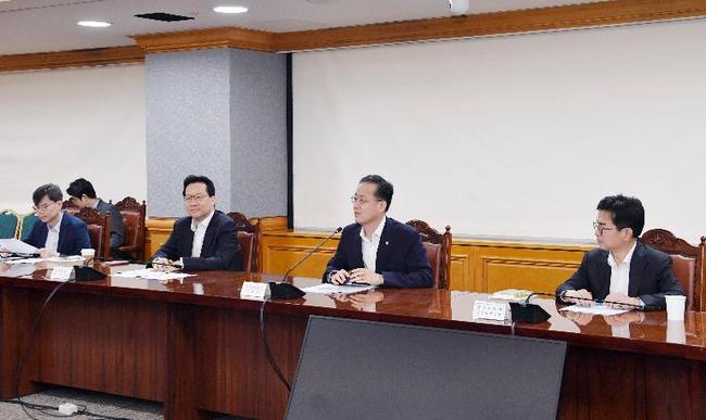 이형일 기획재정부 차관이 8월 8일 오전 서울 중구 은행회관에서 열린 `시장상황점검회의`를 주재, 모두발언을 하고 있다.
