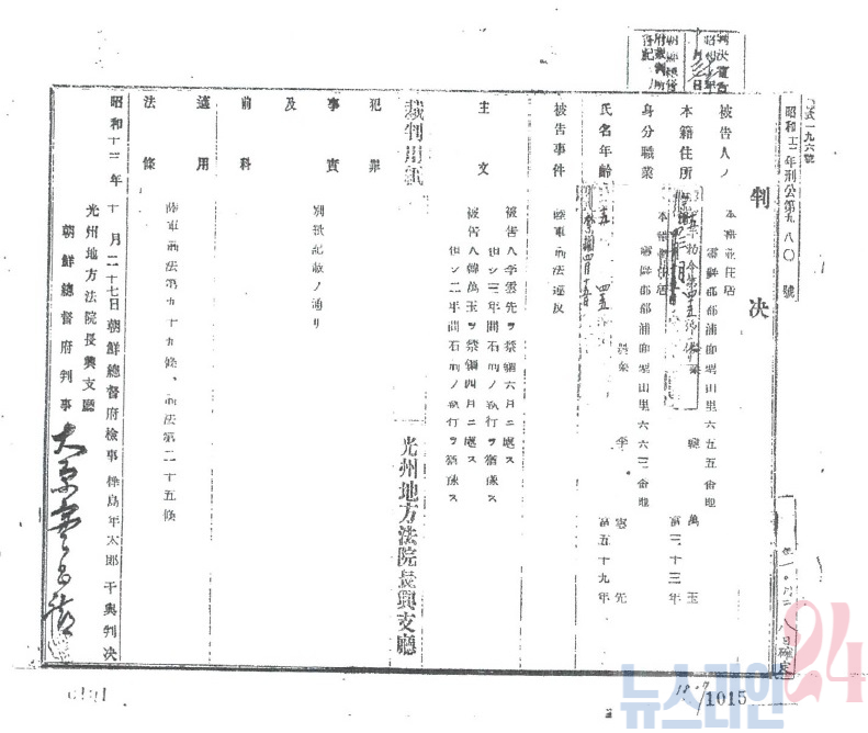 이운선 판결문영암 지역, ‘부녀자 징발 소문’으로 2명 실형