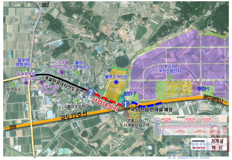 해당 도로는 빛그린국가산업단지와 월야면 구도심을 연결하는 주요 간선도로로, 도로 확장 시 산단 접근성 개선과 물류 효율성 향상은 물론, 근로자 및 기업 관계자 유입 촉진, 지역 상권 활성화, 정주 여건 개선 등 다양한 효과가 기대된다.