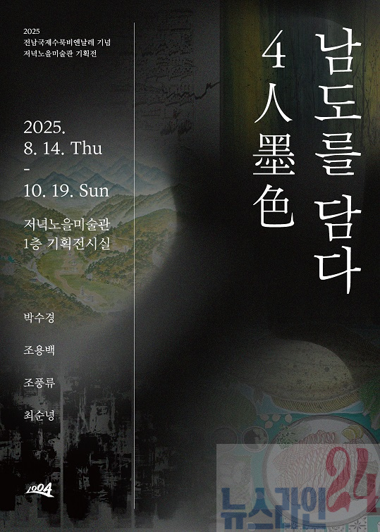 신안군 저녁노을미술관은 2025 전남국제수묵비엔날레를 기념하여 기획전 ‘4人墨色: 남도를 담다’를 개최한다고 밝혔다. 이번 전시는 오는 8월 14일(목)부터 10월 19일(일)까지 열리며, 남도의 예향 정신과 수묵의 매력을 담아낸 한국화 작품 22점을 선보인다.