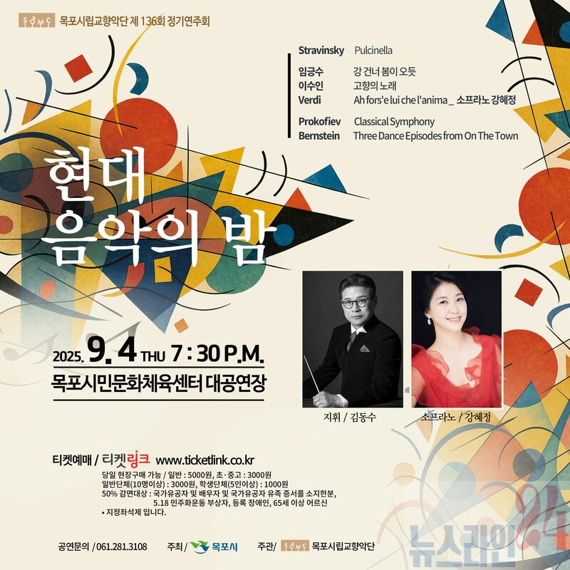 목포시립교향악단의 제136회 정기연주회‘현대 음악의 밤’이 오는 9월 4일 오후 7시 30분, 목포시민문화체육센터에서 열린다.