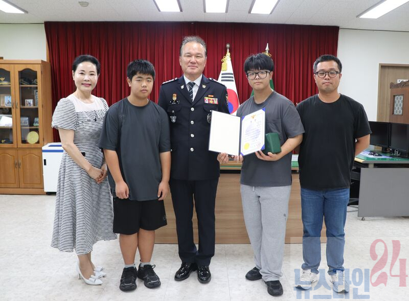 무안경찰서(서장 정성일)는 8월 11일 서장실에서 경찰서장, 경무과장, 학부모, 학생 등 10여 명이 참석한 가운데 무안북중학교 2학년에 재학중인 함형우 군에게 상장을 수여했다고 밝혔다.