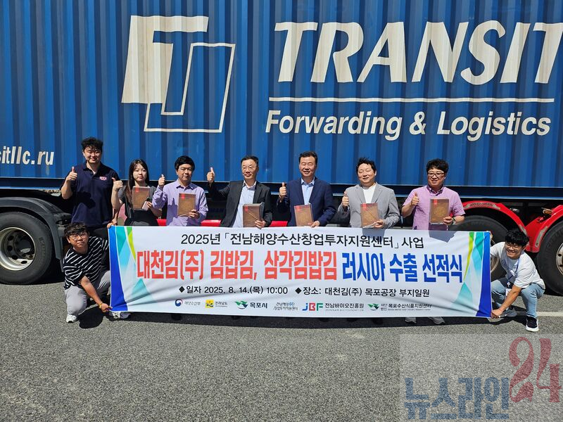 이날 선적식에는 목포시, 전남해양수산창업투자지원센터, 대천김(주) 관계자들이 참석해 수출 성과를 축하하고 향후 수출 확대를 위한 협력 의지를 다졌다.