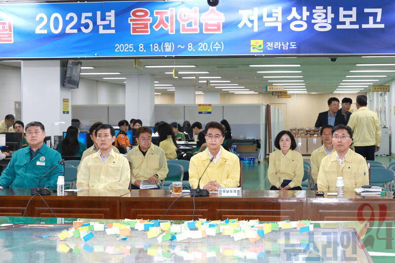 전라남도의회 김태균 의장은 8월 19일 ‘2025년 을지연습 종합상황실’을 방문해 훈련 진행 현장을 참관하고 관계 공무원들의 노고를 격려했다.