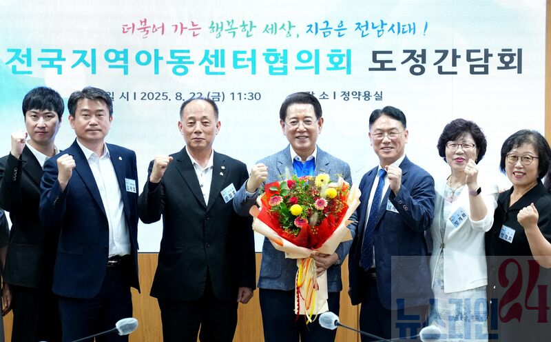김영록 전라남도지사가 22일 도청 접견실에서 전국지역아동센터협의회 임원진들과 도정간담회를 갖고 기념촬영을 하고 있다.