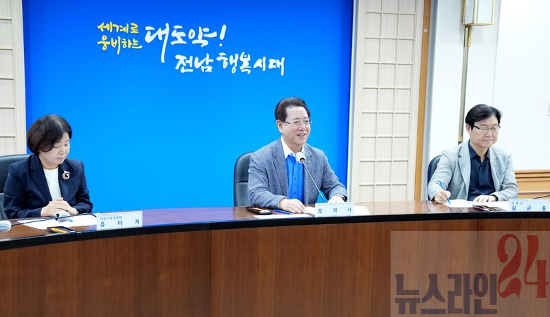 김영록 전라남도지사가 22일 도청 접견실에서 전국지역아동센터협의회 임원진들과 도정간담회를 갖고 있다.