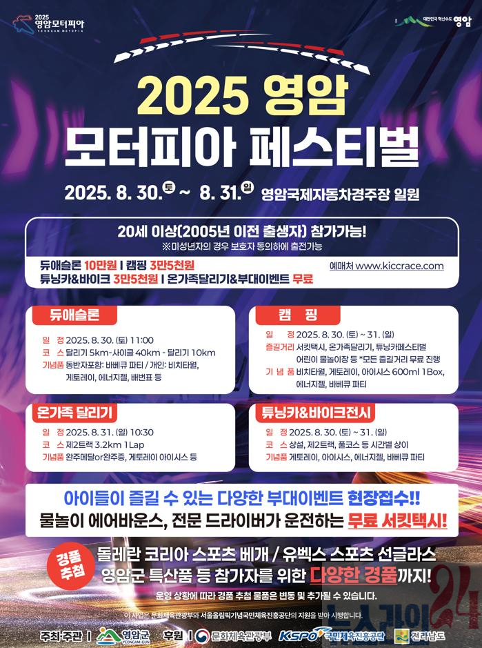 영암군(군수 우승희)이 이달 30~31일 영암국제자동차(F1)경주장에서 ‘2025 영암 모터피아 페스티벌’을 개최한다.