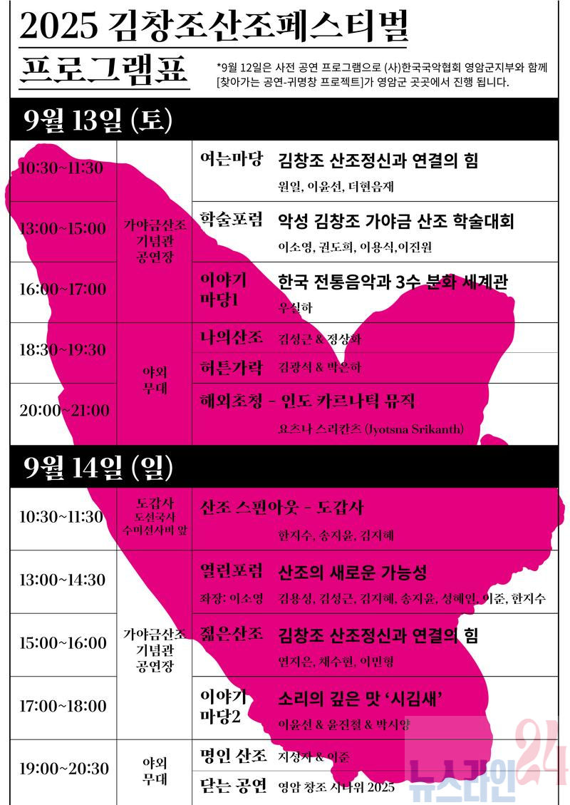 영암의 역사와 자연 속에서 울려 퍼질 ‘허튼 가락’은 100여 년의 시간을 뛰어넘어 오늘을 살아가는 우리에게 깊은 울림과 영감을 선사할 것이다. ‘2025 김창조산조페스티벌’의 모든 프로그램은 누구나 무료로 즐길 수 있으며, 관련 세부 일정과 내용은 공식 SNS 채널과 영암문화관광재단 홈페이지에서 확인할 수 있다.