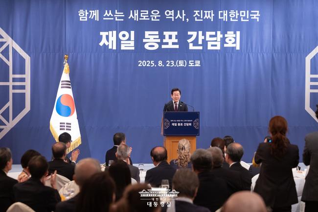이재명 대통령은 일본 도쿄에서 열린 재일 동포 초청 오찬 간담회에서 동포 사회의 헌신에 감사를 전하며, 한일관계 발전을 위한 든든한 가교 역할을 당부했다.