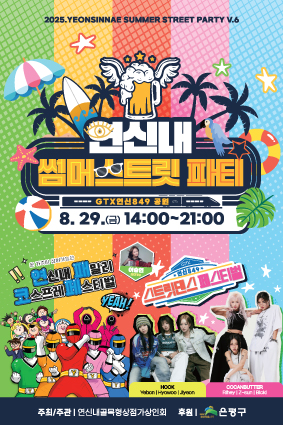 은평구, 오는 29일 제6회 연신내 썸머스트릿 파티 개최.은평구(구청장 김미경)는 오는 29일 오후 2시부터 9시까지 GTX연신849 광장에서 ‘제6회 연신내 썸머스트릿 파티’를 개최한다고 밝혔다. 이번 행사는 연신내골목형상점가 상인회가 주관하며, 무더운 여름을 시원하게 즐기고 골목상권에 활력을 불어넣기 위해 마련됐다.