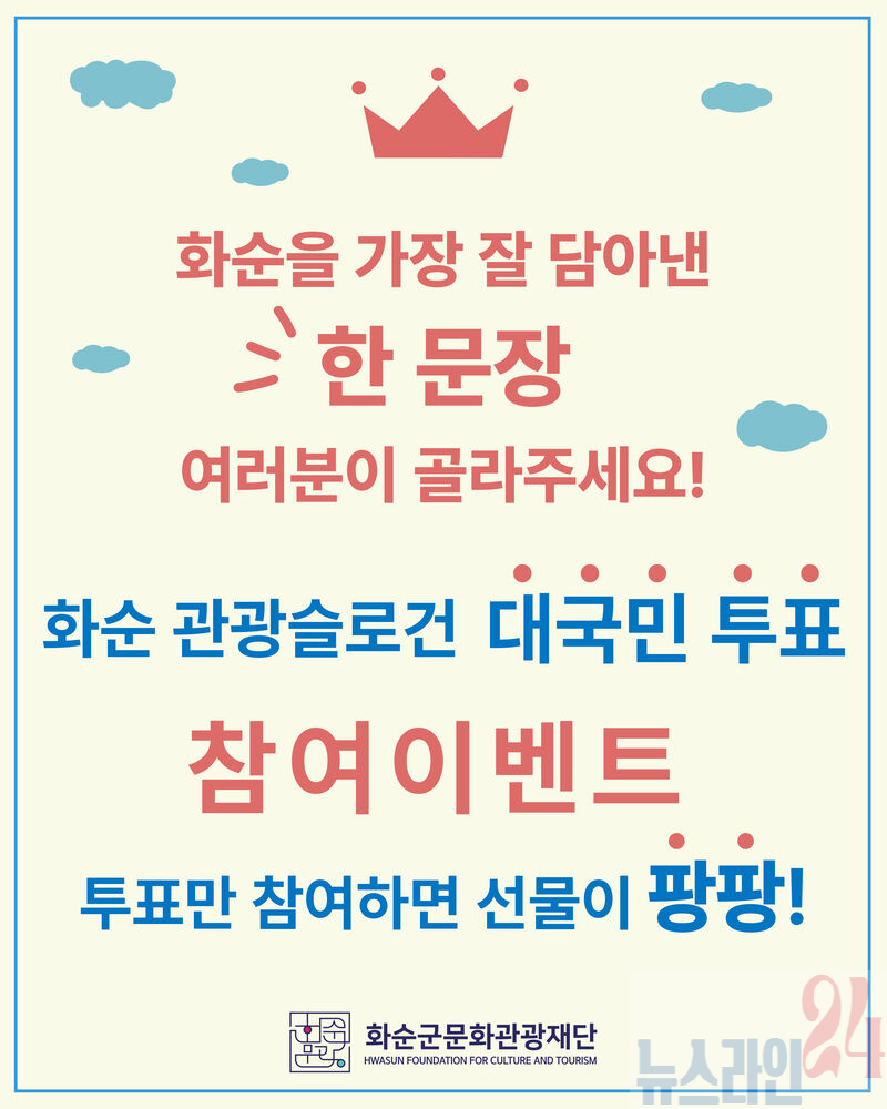 투표는 (재)화순군문화관광재단 홈페이지(www.hfct.or.kr)에서 누구나 참여할 수 있으며, 참여자 가운데 추첨을 통해 커피 쿠폰, 치킨 쿠폰을 증정하는 참여이벤트도 함께 진행된다.