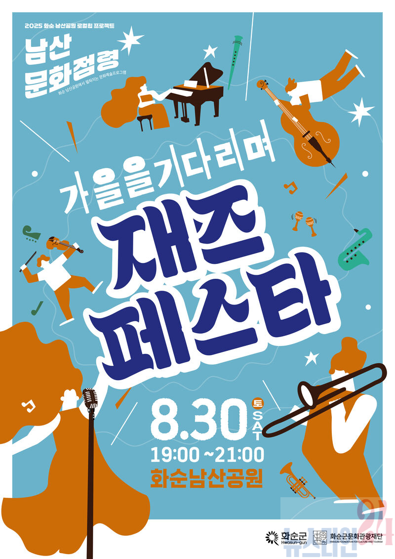 (재)화순군문화관광재단(이사장 구복규)은 8월 30일(토) 오후 7시~ 9시까지 화순 남산공원 야외무대에서 ‘가을을 기다리며 재즈 페스타’를 개최한다고 밝혔다.