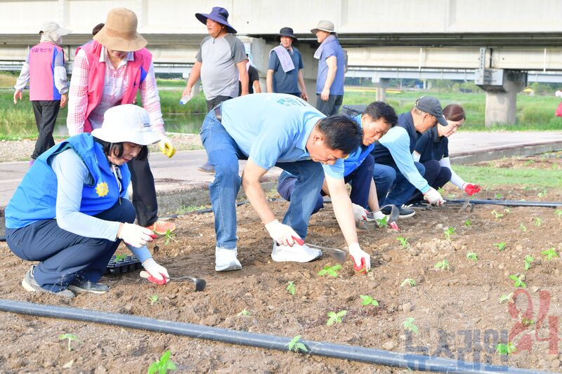 장성군이 25일 황룡강에서 올해 가을꽃축제 준비의 일환으로 해바라기 식재 행사를 가졌다.