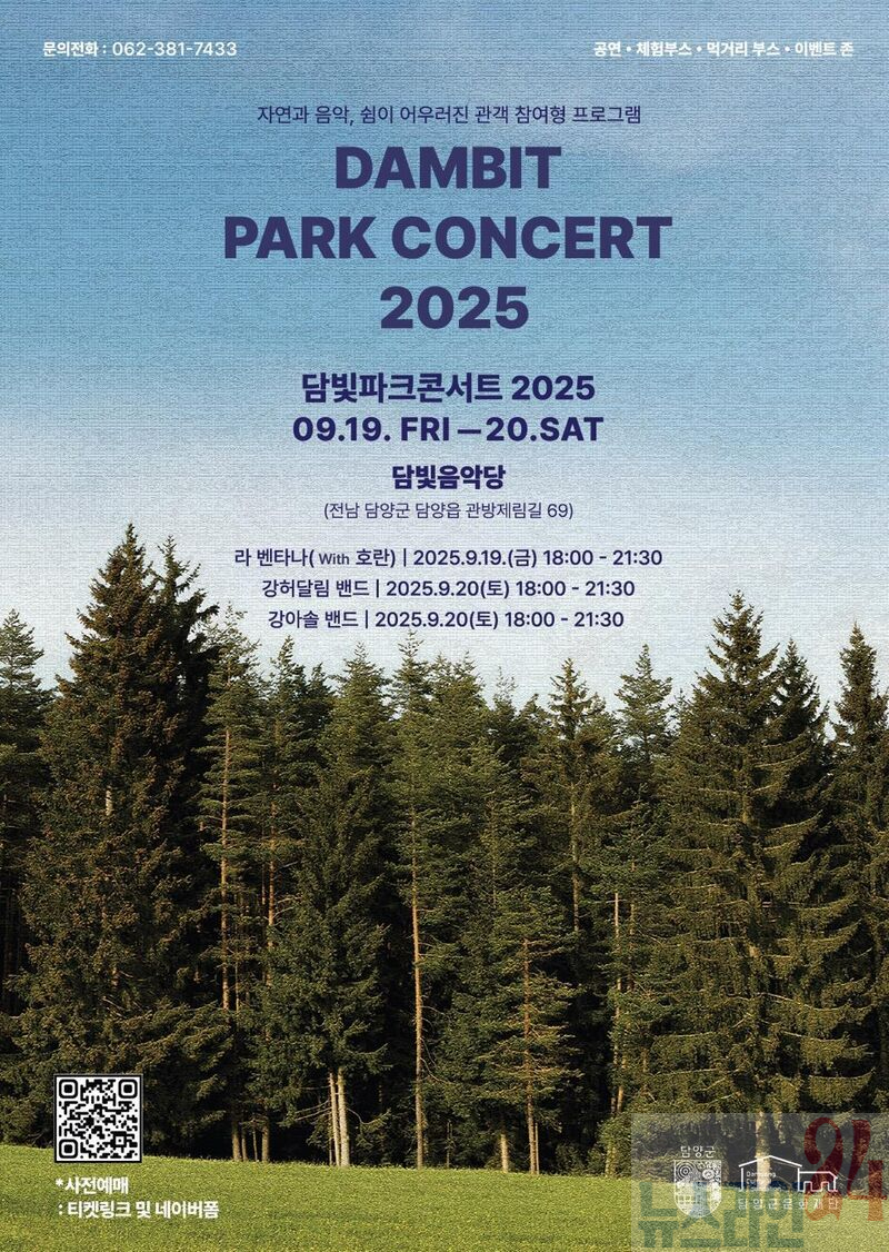 (재)담양군문화재단(이사장 정철원, 이하 재단)은 ‘2025 담빛 파크콘서트’를 오는 9월 19일과 20일 양일간 담빛음악당에서 개최한다고 밝혔다.