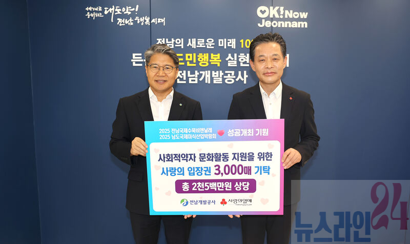 전남개발공사(사장 장충모)가 사회적약자 지원을 위해 사랑의 입장권 3,000매(2,500만원 상당)를 전남사회복지공동모금회에 기탁 했다고 27일 밝혔다.