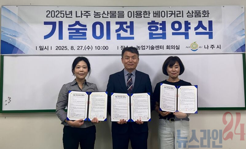 나주시는 지난 27일 농업기술센터 회의실에서 지역 농산물을 활용한 베이커리 상품화 기술이전 협약을 체결했다고 밝혔다.