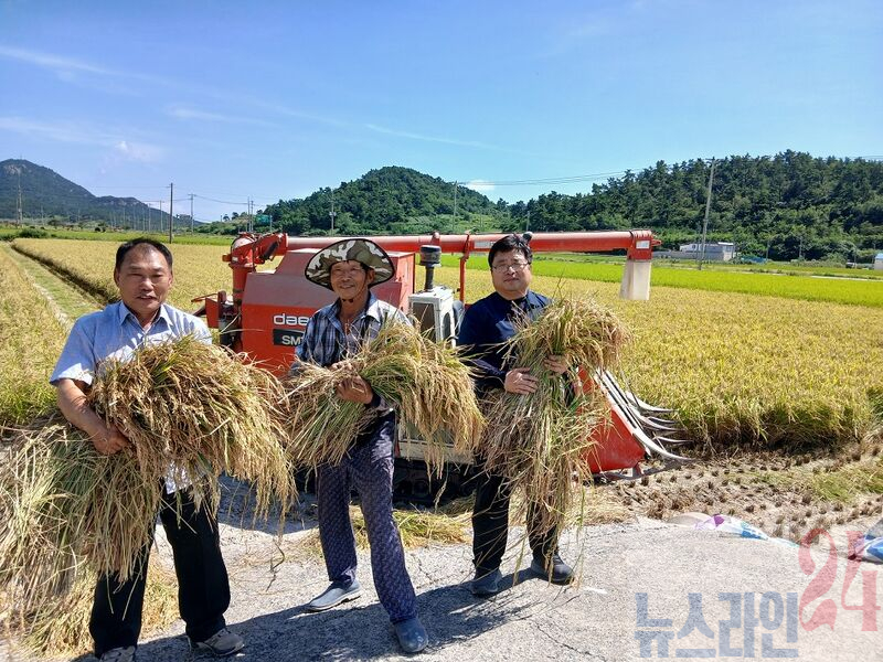 신안군 도초면은 지난 27일, 올해 첫 벼를 수확했다고 밝혔다.