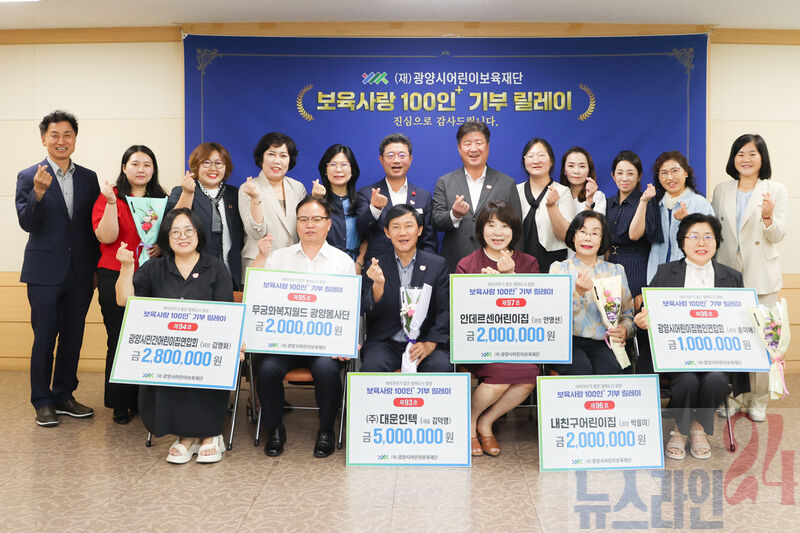 (재)광양시어린이보육재단(이사장 이광용)은 지난 8월 28일 광양시청 만남실에서 정인화 광양시장, 기탁자 등 20여 명이 참석한 가운데 「보육사랑 100인+ 기부 릴레이」 후원금 기탁식을 개최했다.