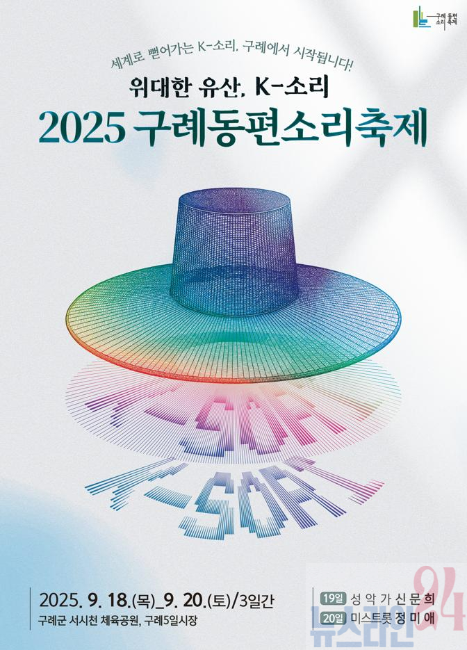 전남 구례군은 오는 9월 18일부터 20일까지 3일간 서시천 체육공원과 구례5일시장 일원에서 ‘2025 구례동편소리축제’를 개최한다고 밝혔다.