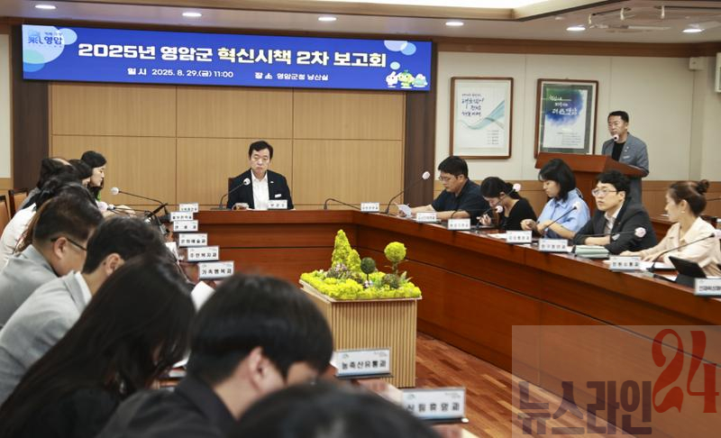 영암군(군수 우승희)이 8/29일 군청에서 ‘2025년 혁신시책 2차 보고회’를 열고, 25개 실과소에서 제안한 혁신시책 58건의 추진 현황을 중간 점검했다.