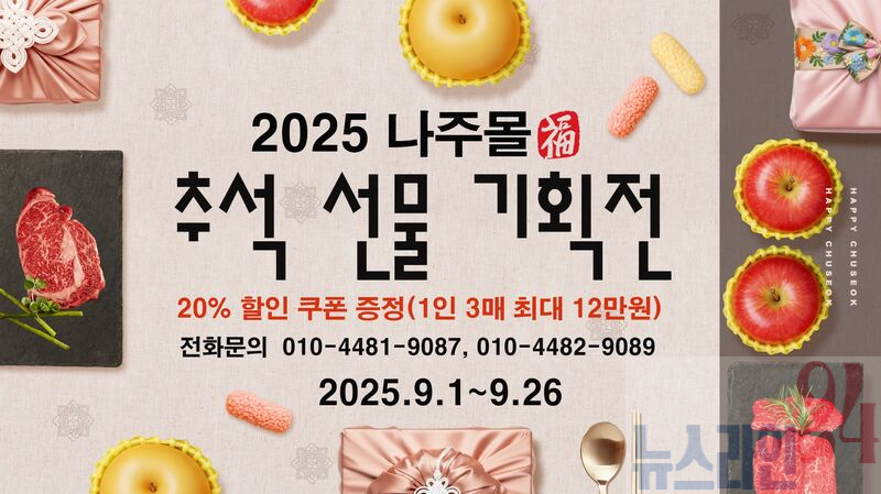 나주시(시장 윤병태)는 오는 9월 26일까지 ‘2025 나주몰 추석 명절 특판전’을 열고 나주배, 배즙, 쌀, 홍어, 한우 등 대표 농특산물을 포함한 전 품목을 20% 할인한다고 3일 밝혔다.
