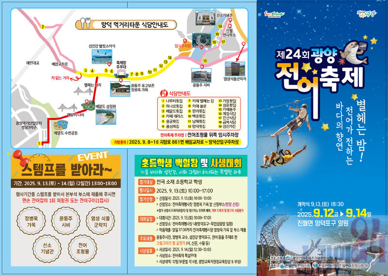 이어 “풍성한 체험 프로그램과 입맛을 돋우는 다채로운 먹거리, 역사와 문화예술이 어우러진 제24회 광양전어축제와 함께 재미·별미·의미를 모두 충족하는 1석 3조, 오감만족 가을 광양여행을 즐기시길 바란다”고 덧붙였다.