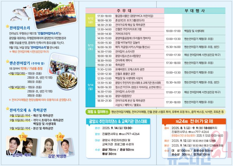 시민 누구나 무대의 주인공이 될 수 있는 전어가요제는 12일 예심을 거쳐 14일 본선 무대에서 초대가수 축하공연과 함께 화려하게 펼쳐진다.